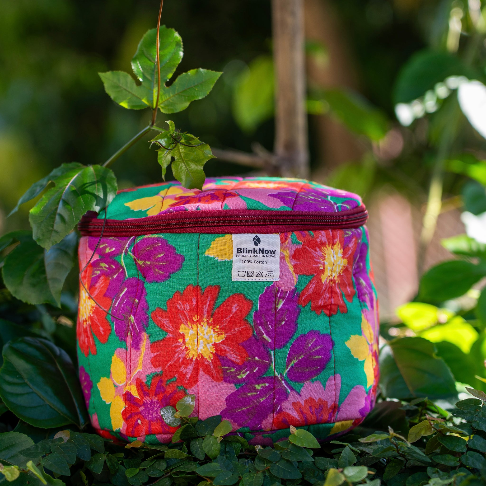 Created with cheerful cotton fabric and made just the right size for organizing your cosmetics or other travel necessities. Quilted for beauty and protection, in two handy sizes.