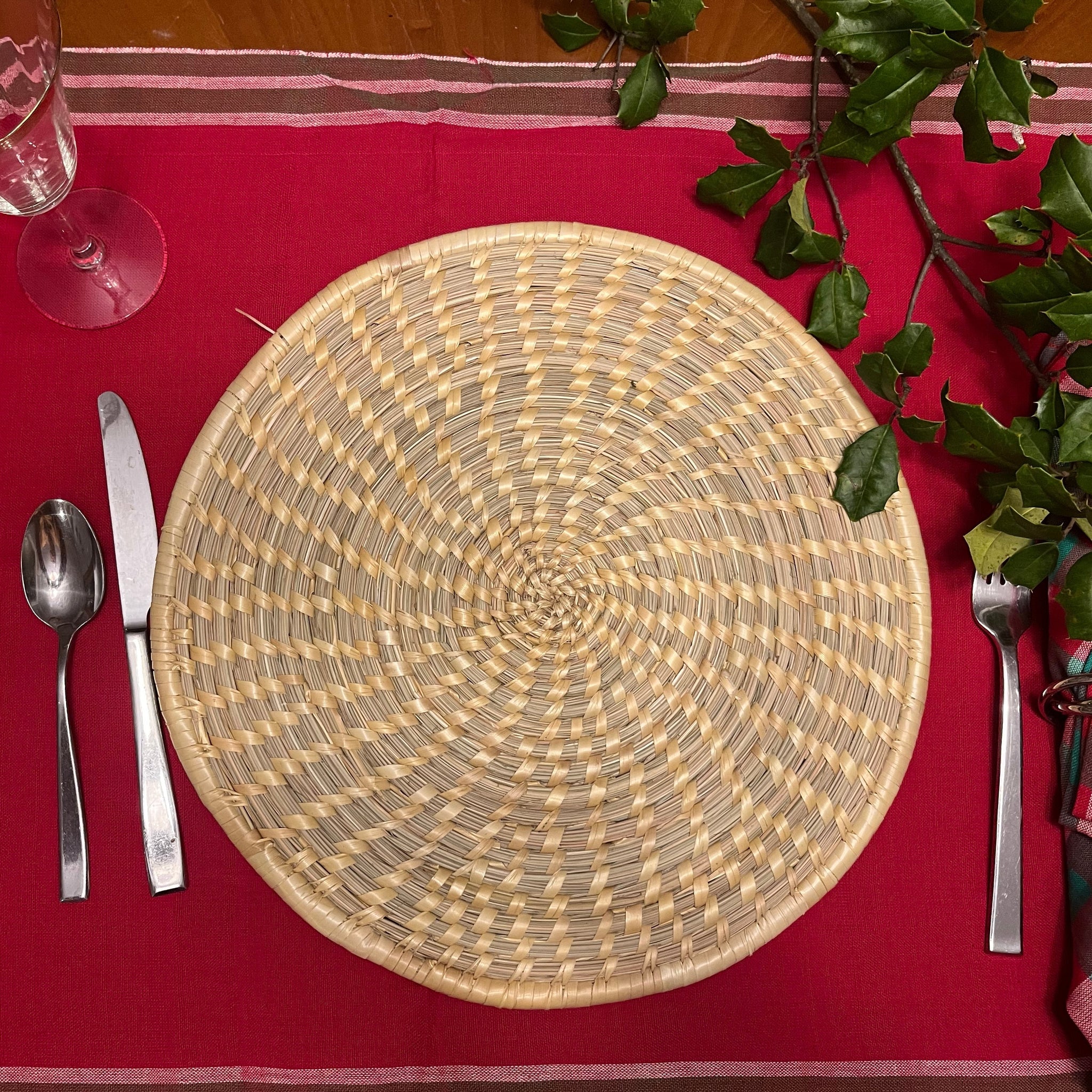 Crafted by skilled Tharu women, these hand-coiled mats celebrate generations of weaving tradition. Made from sustainably harvested moonj grass, each piece is as strong and resilient as the artisans who create them. The natural fibers showcase beautiful variations, making every mat truly one-of-a-kind. Perfect for adding warmth and character to any space while supporting fair-trade craftsmanship and environmental stewardship.